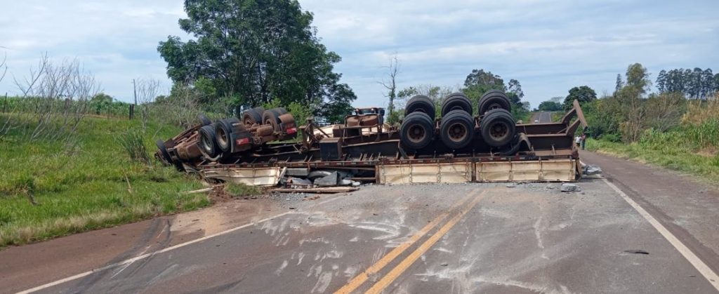 O caminhão SCANIA T124, com placas de Mandaguaçu (PR), seguia no sentido Cafezal do Sul–Iporã, tracionando o semirreboque SR/RANDOM.