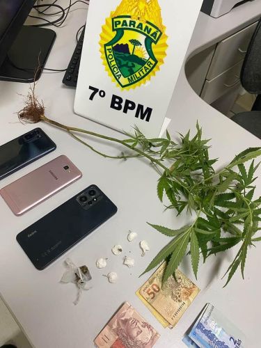 Com autorização da responsável pelo imóvel, os policiais realizaram buscas em uma residência próxima. No interior, encontraram mais entorpecentes, uma planta de maconha, dinheiro trocado e celulares. Outro homem, de 18 anos, estava dentro da casa.