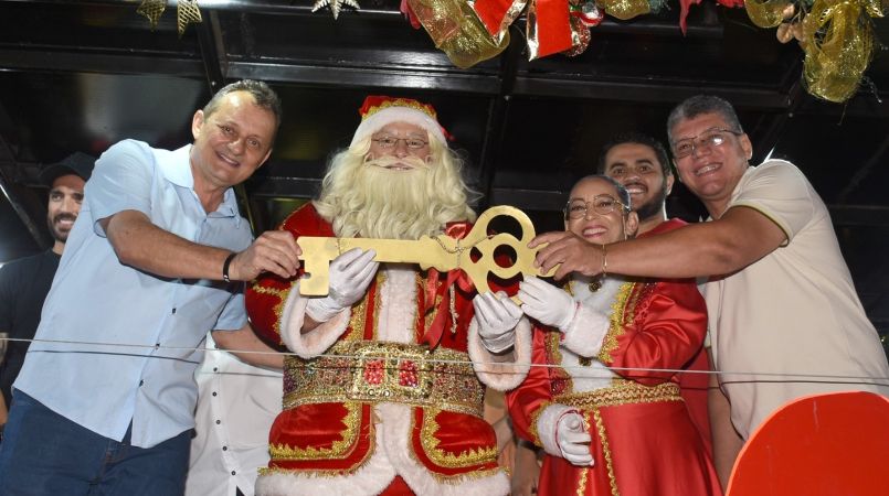 Ao chegar à Praça da Igreja Matriz, Papai Noel foi recebido com euforia e encantamento pelo público. Em um momento simbólico, recebeu das mãos do prefeito Pedro Coelho as chaves da cidade, oficializando a abertura das festividades natalinas. Logo depois, seguiu para sua “casa” montada na praça, onde atendeu crianças, tirou fotos e distribuiu carinho. Assim, tornou a noite ainda mais especial para os pequenos.