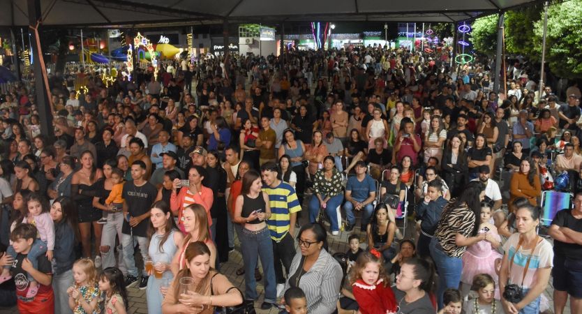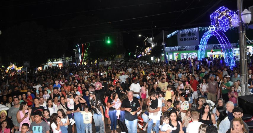 A chegada do Papai Noel reuniu milhares de pessoas na Praça da Igreja Matriz em Goioerê e abriu oficialmente as festividades natalinas.
