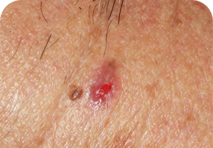 Outro ponto importante é que ainda existem as lesões pré-malignas, que são aquelas “pintinhas vermelhas na pele. Descamam, algumas vezes coçam, às vezes ardem. São lesões principalmente nos braços no rosto. Na orelha e no colo também. Região onde recebeu muito o sol.” Conquanto não sejam melanoma, elas podem evoluir para carcinomas espinocelulares se não forem tratadas.