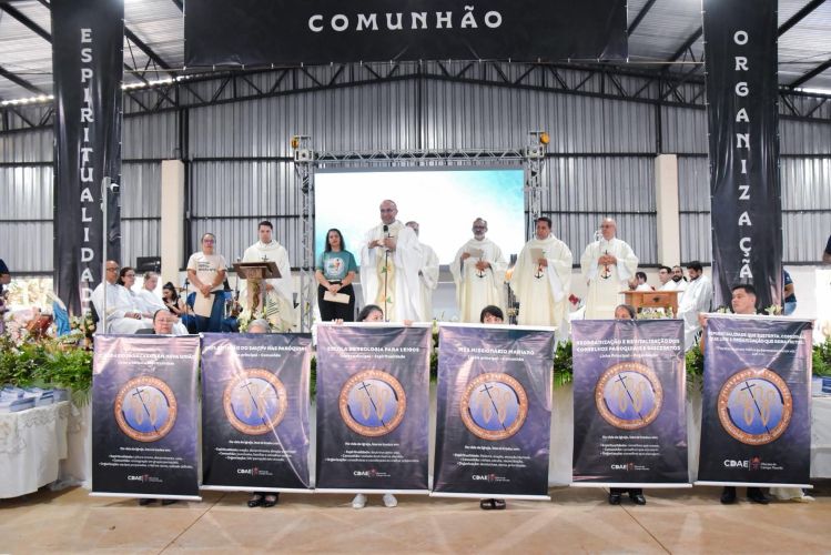 Os banners das cinco linhas de ação também foram apresentados. Em seguida, padres receberam simbolicamente o projeto. Leigos e leigas receberam cópias do livreto, reforçando corresponsabilidade e compromisso comunitário.