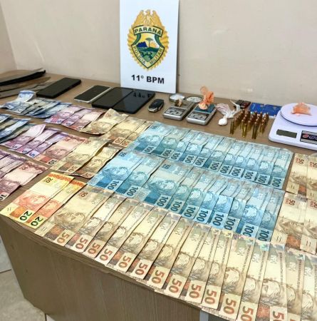 No quarto do primeiro abordado, os policiais localizaram R$ 3.484 em espécie, 25 munições de calibre 9mm, cerca de 3g de maconha e duas balanças de precisão.