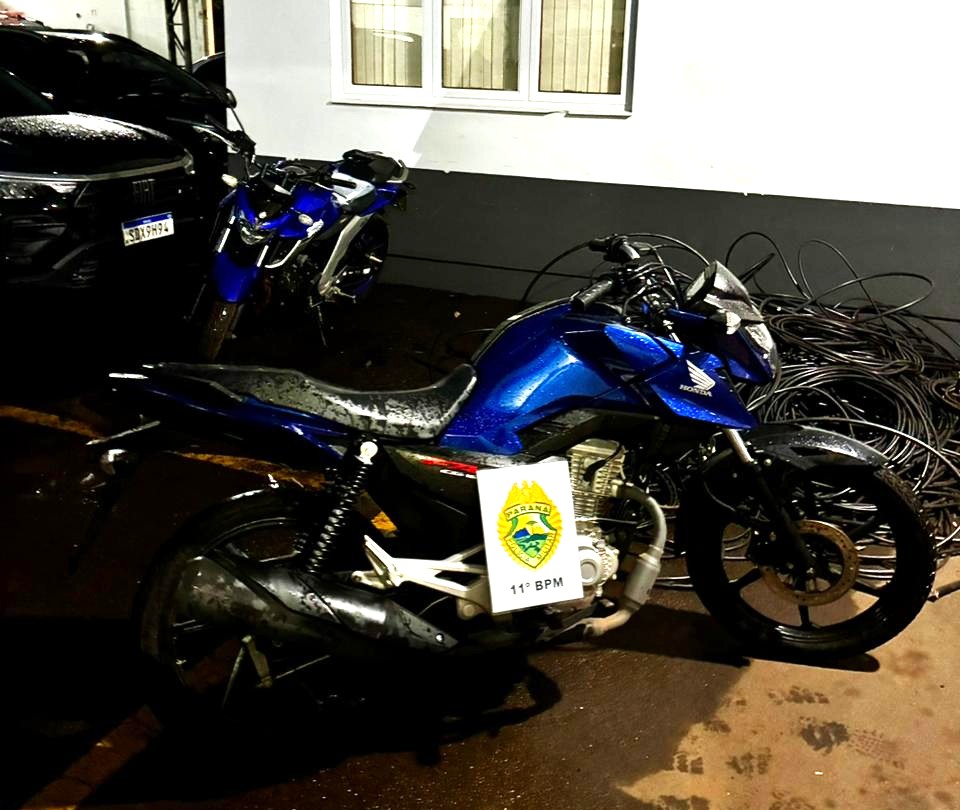 Logo depois, durante as diligências, os policiais identificaram uma motocicleta com sinais evidentes de adulteração nos identificadores. Após verificação técnica, constatou-se que o veículo era produto de furto. Assim, a ação também resultou na recuperação de patrimônio subtraído, fortalecendo o combate à receptação.