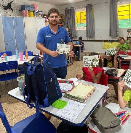 A Prefeitura de Goioerê, por meio da Secretaria de Agricultura, Meio Ambiente e Recursos Hídricos, realizou na tarde de ontem (09) a entrega de panfletos informativos sobre coleta seletiva aos alunos da Rede Municipal de Ensino. A iniciativa integra o conjunto de ações de educação ambiental desenvolvidas pelo município e busca conscientizar crianças e famílias sobre a importância do descarte correto dos resíduos.