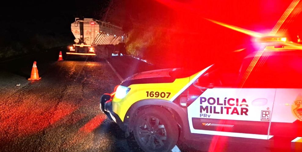 Às 21h30, um caminhão VW/24.280 colidiu na traseira de um semirreboque acoplado a um Mercedes-Benz/Axor no km 161 da PR-323, em Paiçandu. O motorista do VW sofreu ferimentos e recebeu socorro antes da chegada da equipe. O condutor do Mercedes, de 53 anos, não se feriu e realizou teste do etilômetro, que apontou 0,00 mg/L. Portanto, os policiais liberaram ambos os veículos, já que estavam regulares.